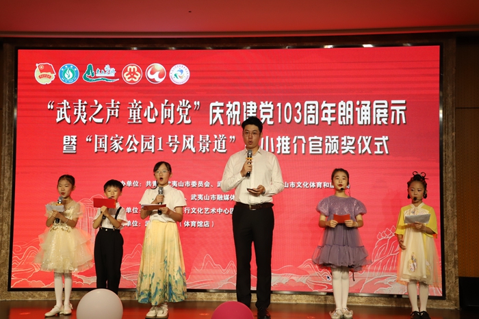 文明風(fēng)7月1日訊 為謳歌黨的豐功偉績,緬懷革命先烈,激發(fā)青少年熱愛黨、熱愛祖國的情感。6月26日,武夷山市在市文化館舉辦“武夷之聲、童心向黨”慶祝建黨103周年朗誦展示暨“國家公園1號風(fēng)景道”小小推介官頒獎(jiǎng)儀式。