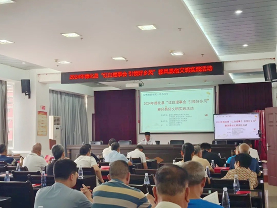 為弘揚(yáng)文明新風(fēng),倡導(dǎo)文明、健康、科學(xué)的婚喪嫁娶禮儀新風(fēng),德化縣潯中鎮(zhèn)將推進(jìn)移風(fēng)易俗作為文明村鎮(zhèn)創(chuàng)建的重要一環(huán),讓文明新風(fēng)在潯中鎮(zhèn)全面落地生根。近日,潯中鎮(zhèn)潯中村開(kāi)展“紅白理事會(huì) 引領(lǐng)好鄉(xiāng)風(fēng)”移風(fēng)易俗文明實(shí)踐活動(dòng),深入推動(dòng)移風(fēng)易俗,以文明實(shí)踐活動(dòng)引領(lǐng)社會(huì)新風(fēng)尚,為創(chuàng)建全國(guó)文明城市貢獻(xiàn)全民力量。