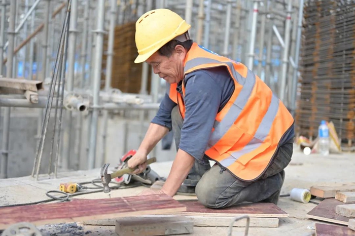 建筑工人用汗水濟筑民生工程