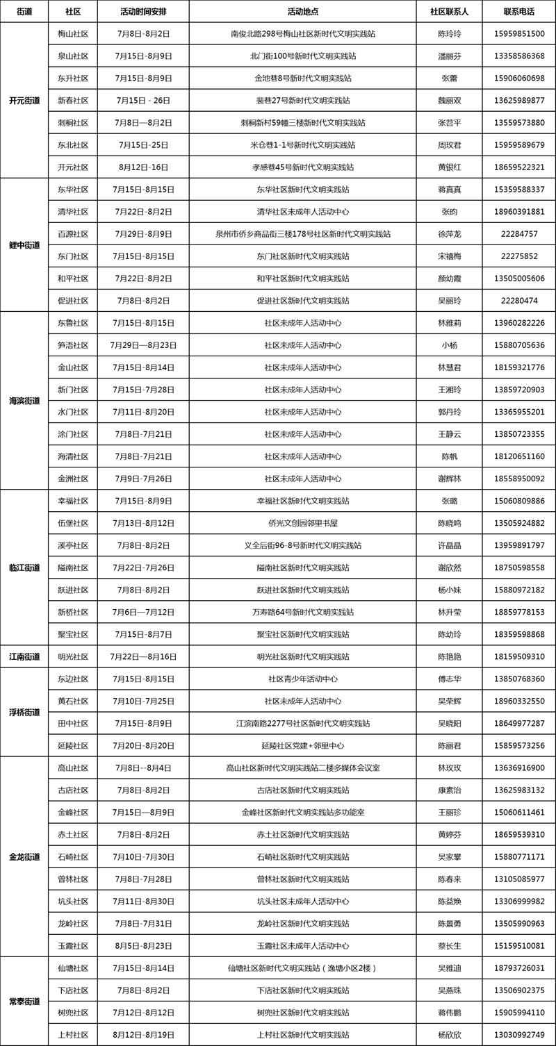 2024年鯉城區(qū)社區(qū)快樂暑期活動開展情況匯總表