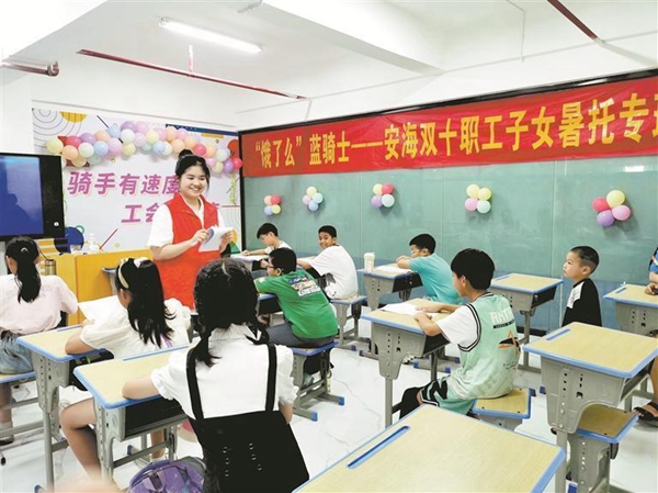 晉江市已連續(xù)多年舉辦職工子女暑托班,通過各級(jí)工會(huì)開辦暑托班,讓職工子女在暑假可以就近學(xué)習(xí)、培養(yǎng)興趣,解決管護(hù)問題,在推動(dòng)職工隊(duì)伍穩(wěn)定、構(gòu)建和諧勞動(dòng)關(guān)系中發(fā)揮工會(huì)組織的積極作用。如今的暑托班設(shè)置了內(nèi)容豐富的課程,通過寓教于樂的方式,讓孩子們度過一個(gè)愉快、有意義的假期。暑托班在職工群體中已形成良好的口碑,報(bào)名參加的職工子女一年比一年多。(晉江市委文明辦)