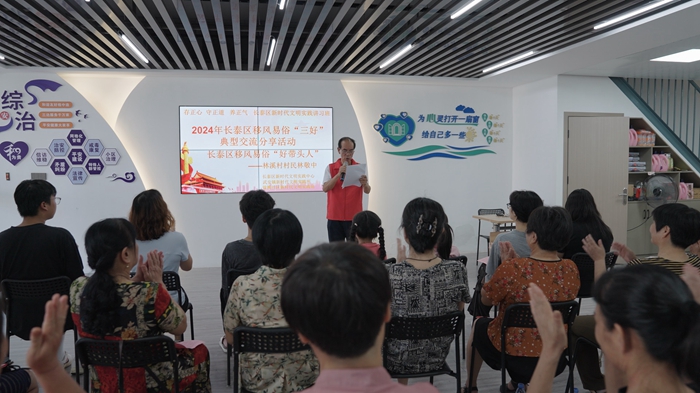 長泰區(qū)移風(fēng)易俗“好帶頭人”——林溪村村民林敬中作交流分享。長泰區(qū)委文明辦 供圖