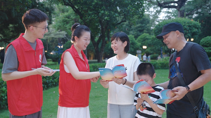 圖為志愿者在中山公園給市民發(fā)放漳州市鄉(xiāng)風(fēng)文明宣傳冊(cè)