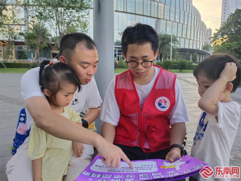 志愿者向往來(lái)行人科普防暑降溫知識(shí)。(集美區(qū)銀江路志愿服務(wù)驛站供圖)