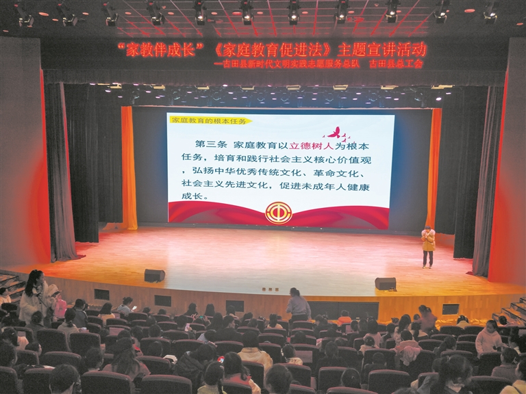 古田縣總工會(huì)在縣工人文化宮影劇院開展“家教伴成長(zhǎng)”《中華人民共和國(guó)家庭教育促進(jìn)法》主題宣講活動(dòng)