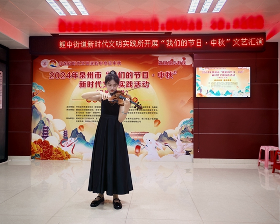 9月14日上午,由鯉城區(qū)委宣傳部(文明辦)主辦,鯉中街道新時代文明實踐所、東門社區(qū)新時代文明實踐站承辦,在社區(qū)二樓多媒體室開展“和諧鄰里 共度中秋”文藝匯演活動?;顒蝇F(xiàn)場,小提琴獨奏《愛的致意》、南音隊大合唱《直入花園》、東門社區(qū)舞蹈隊表演的《中國大舞臺》、李雪琴獨舞《畫你》、夢之源舞蹈隊的《秋夢》等精彩節(jié)目輪番登場,居民共同感受著中秋佳節(jié)的喜悅氛圍。此次文藝匯演不僅為轄區(qū)居民帶來了一場視聽盛宴,更增進了鄰里之間的感情。