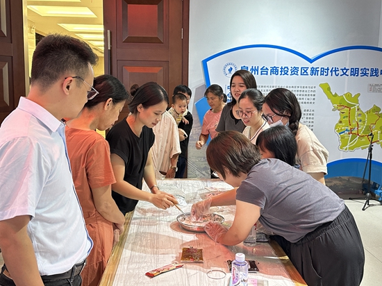 9月14日下午,泉州臺商投資區(qū)在新時代文明實踐中心開展“我們的節(jié)日·中秋”——“中秋團圓日 家和萬事興”主題活動。廣大干部職工與群眾歡聚一堂,在糕點師傅的指導下制作手工月餅,了解中秋節(jié)的來源與傳統(tǒng)文化;活動還設置中秋節(jié)及防范非法集資相關知識問答環(huán)節(jié),使干部職工和群眾在拼手速、比腦力中加強交流互動,現(xiàn)場氣氛熱烈而溫馨。