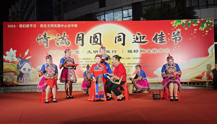 充滿真情和真誠(chéng)的歌曲《如愿》、富有書(shū)香氣息的舞蹈表演《大儒小子》、緊扣中秋主題的表演《爺爺為我打月餅》等各樣文藝演出裝點(diǎn)了這個(gè)中秋的歡慶之夜。除了歌舞表演,晚會(huì)還設(shè)置了非遺演示《梳妝技藝》,向群眾展示了市級(jí)非物質(zhì)文化遺產(chǎn)嶺炳洋畬族梳妝技藝,讓群眾更了解延平本地的優(yōu)秀傳統(tǒng)和特色文化。期間還不時(shí)穿插中秋傳統(tǒng)習(xí)俗、民族團(tuán)結(jié)、文明創(chuàng)建、黨的二十屆三中全會(huì)精神等有獎(jiǎng)問(wèn)答,現(xiàn)場(chǎng)群眾熱情高漲,氣氛活躍。