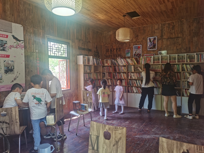 孩子們?cè)诖遛k書屋內(nèi)閱讀。福州文明網(wǎng)供圖