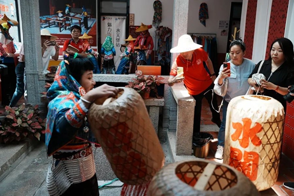 “加油,加油……”在潮樂村水關林氏宗祠前,幾名漁民正在表演市級非物質文化遺產“漁家角力”,在硬實力和技巧的加持下,兩名孔武有力的男子正在角力。這個源于六七百年前的囤兵、漁民的休閑娛樂方式,如今以嶄新的方式贏得游客們的青睞。