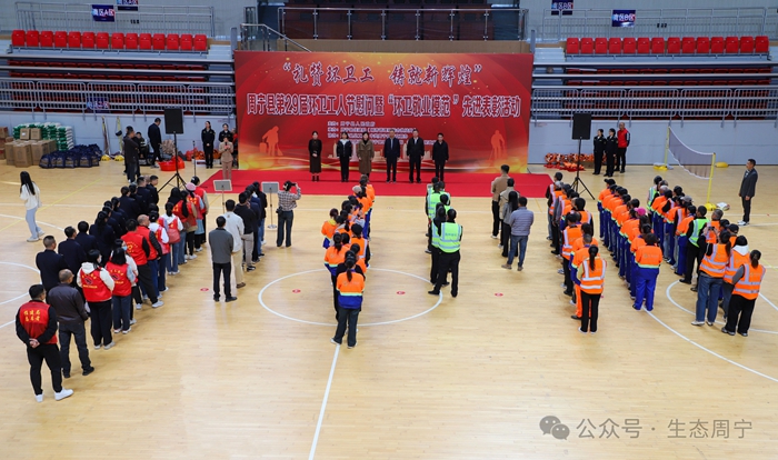 11月8日,“禮贊環(huán)衛(wèi)工 鑄就新輝煌”周寧縣第29屆環(huán)衛(wèi)工人節(jié)慰問(wèn)暨“環(huán)衛(wèi)敬業(yè)模范”表彰活動(dòng)在周寧縣體育館舉行?;顒?dòng)現(xiàn)場(chǎng),主辦方為40名優(yōu)秀環(huán)衛(wèi)工人進(jìn)行表彰,為他們頒發(fā)榮譽(yù)證書(shū)、鮮花以及獎(jiǎng)金。同時(shí),為全體環(huán)衛(wèi)工人頒發(fā)節(jié)日慰問(wèn)品。
