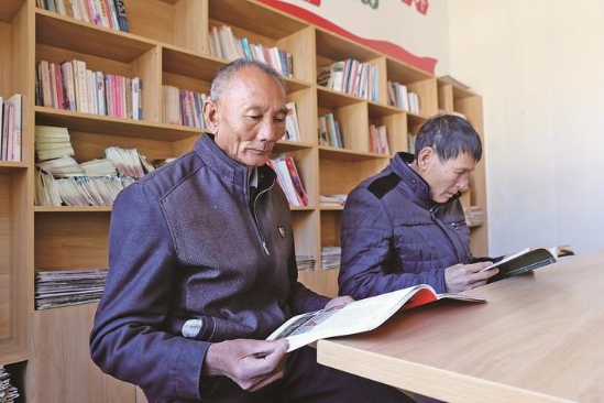 茶湖江村老人在閱覽室看書。 (張凌波 攝)