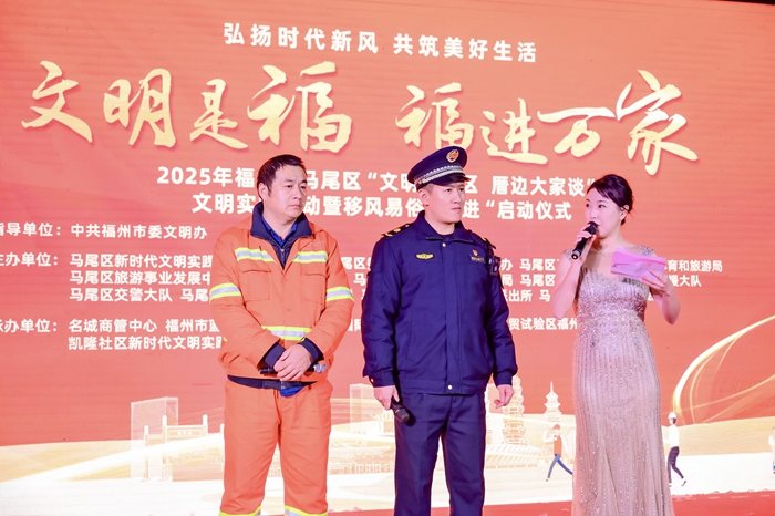 文明風(fēng)1月9日訊 弘揚(yáng)時(shí)代新風(fēng),共筑美好生活。為進(jìn)一步倡導(dǎo)移風(fēng)易俗,培育踐行社會(huì)主義核心價(jià)值觀,近日,2025年福州市馬尾區(qū)“文明進(jìn)社區(qū) 厝邊大家談”文明實(shí)踐活動(dòng)暨移風(fēng)易俗“五進(jìn)”啟動(dòng)儀式在馬尾區(qū)名城中心舉辦。
