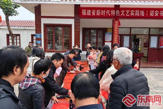 儀式上,陳志亮為福建省新時(shí)代特色文藝實(shí)踐地(詔安書畫院)揭牌。隨后,縣領(lǐng)導(dǎo)一行參觀詔安書畫院陳列館。活動(dòng)現(xiàn)場(chǎng)還開展義寫春聯(lián)和書畫筆會(huì)等文藝惠民活動(dòng),書畫家們現(xiàn)場(chǎng)揮毫潑墨,一幅幅寓意吉祥的畫作和一副副滿載祝福的春聯(lián)接連而出。
