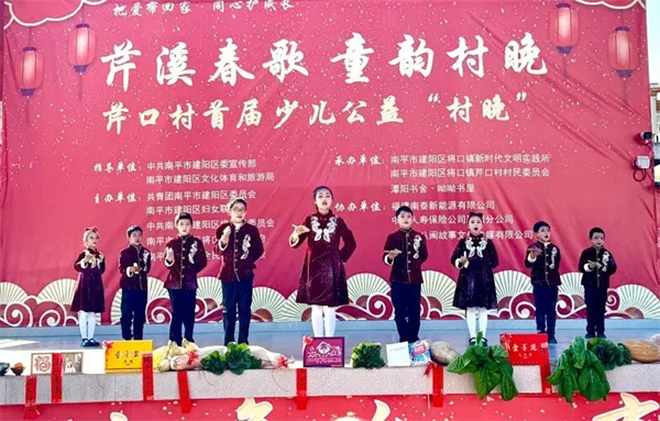 在快板聲聲中,南平市建陽區(qū)將口鎮(zhèn)芹口村的“把愛帶回家 同心護(hù)成長”少兒公益“村晚”開場了,《村娃鬧春》《好運(yùn)來》《大中國》等舞蹈、詩歌朗誦、快板、古箏表演接連上演,為鄉(xiāng)村兒童們帶來了一場酣暢淋漓的中華民族的傳統(tǒng)文化的洗禮。