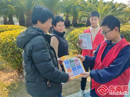 志愿者發(fā)放垃圾分類宣傳單(三秀社區(qū)新時(shí)代文明實(shí)踐站供圖)
