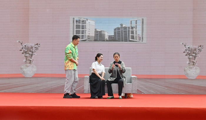 小品演繹《見(jiàn)縫插針》(溫泉街道供圖)