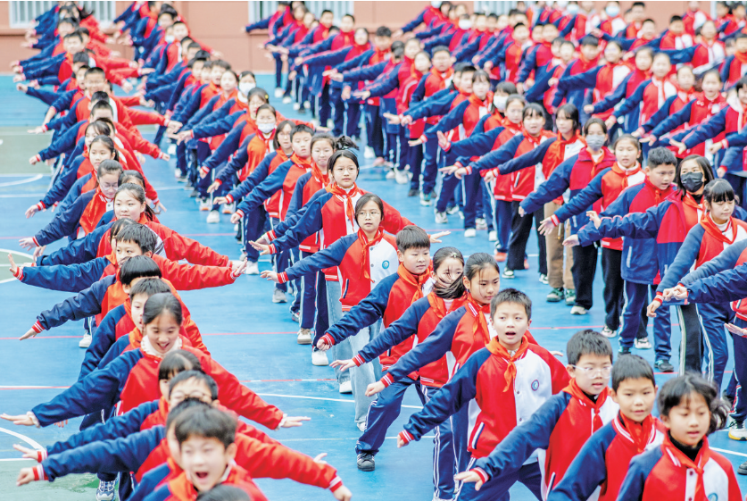 “我們都很喜歡練習(xí)武術(shù)操。武術(shù)操不僅是一種體育運(yùn)動(dòng),更是一種文化傳承和藝術(shù)表現(xiàn)?!绷辏?)班學(xué)生林子萱從一年級(jí)開始跟隨體育教師學(xué)習(xí)武術(shù)操,每天回家后練習(xí),還經(jīng)常帶動(dòng)家人一起練習(xí)武術(shù)操。
