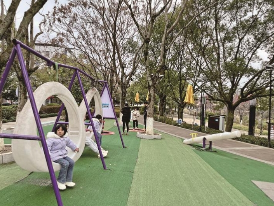 孩子們?cè)谔幙h水西社區(qū)附近的濱河公園歡快地玩耍