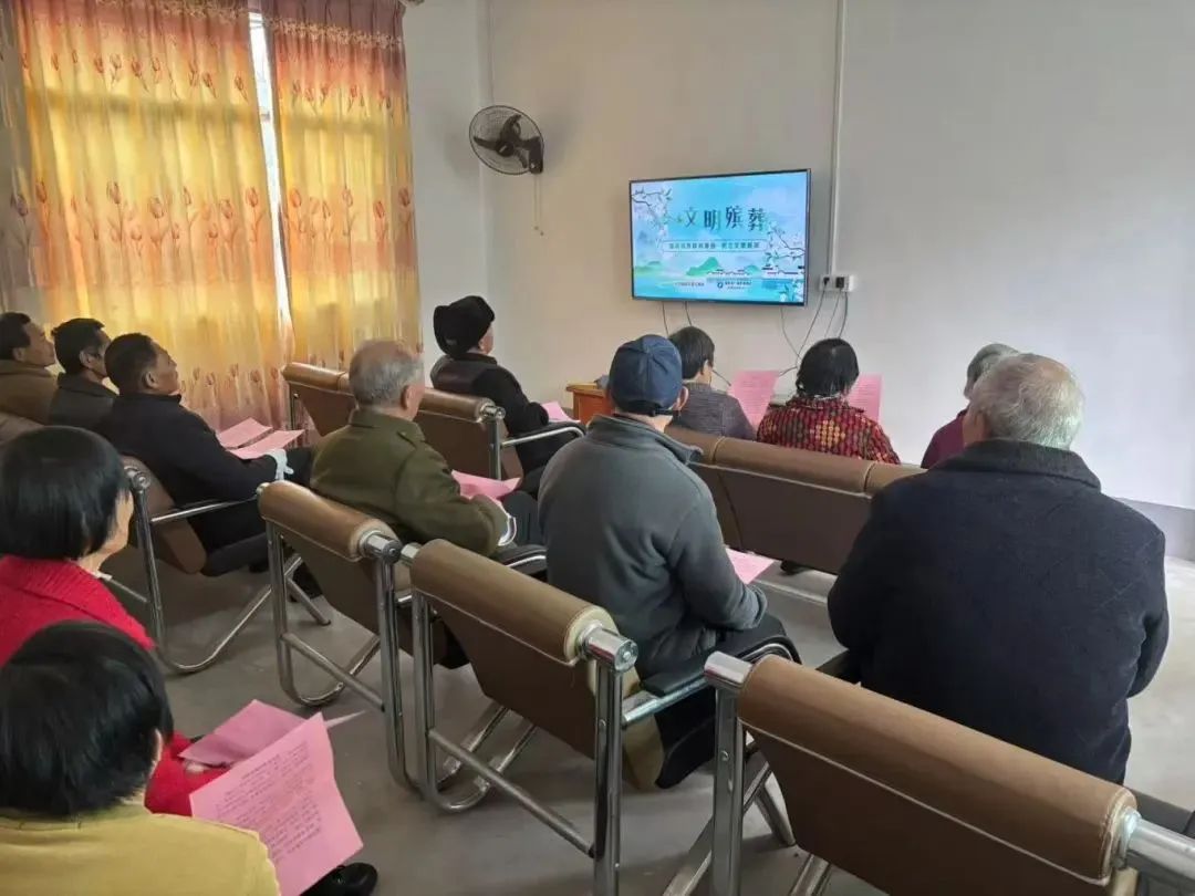 依托新時代文明實踐所及各村新時代文明實踐站,播放宣傳視頻,向村民普及文明殯葬的相關內容,讓群眾詳細了解文明殯葬的必要性以及陳規(guī)陋習的危害性,引導群眾在辦理喪事、祭奠親人時,不攀比、不大操大辦、不鋪張浪費,用綠色、生態(tài)、文明的殯葬方式進行祭奠。