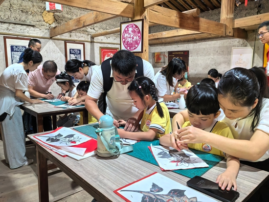 在楊梅鄉(xiāng)云溪村家風(fēng)家訓(xùn)館,小學(xué)生體驗(yàn)刻紙非遺。李宏圖 供圖