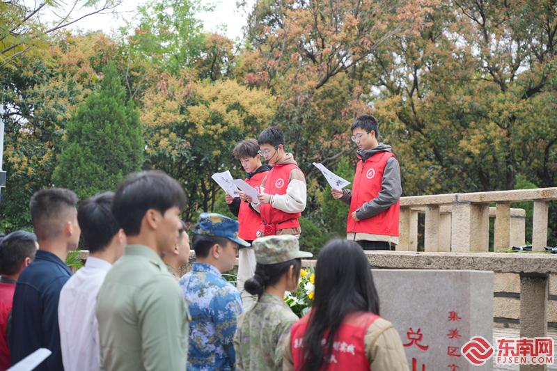 全體人員齊聲宣讀《文明祭掃倡議書》(集美區(qū)新時(shí)代文明實(shí)踐中心供圖)