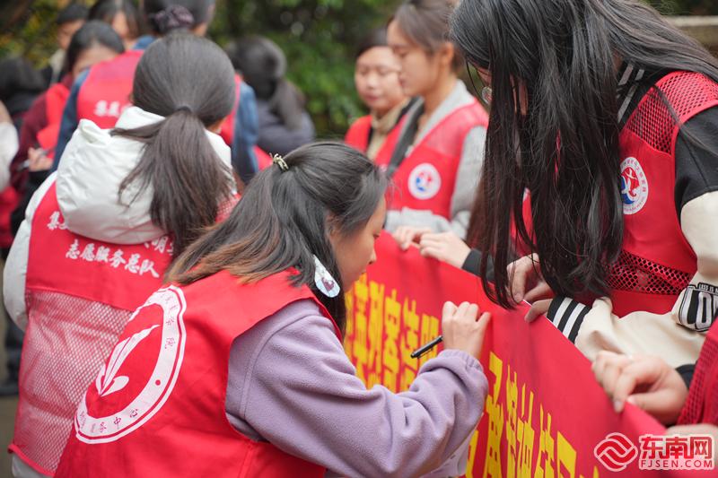 志愿者在主題橫幅上簽名承諾(集美區(qū)新時(shí)代文明實(shí)踐中心供圖)