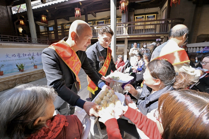 道德模范典型分發(fā)清明粿 鄭帥 攝