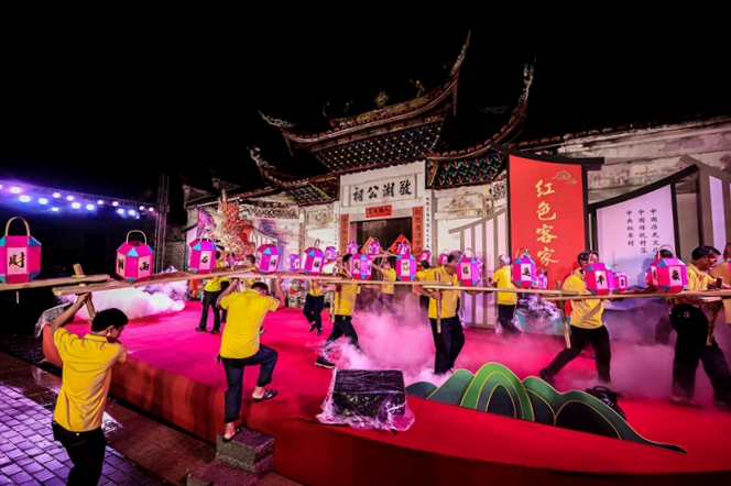 寧化縣曹坊鎮(zhèn)敬湖公祠舉辦全國“四季村晚”夏季示范展示活動。黃尉峰 攝