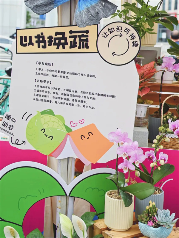 在外圖廈門(mén)書(shū)城廣場(chǎng),一場(chǎng)“BOOK思議·趣閱讀”兒童友好市集閃亮登場(chǎng),全方位營(yíng)造兒童友好的閱讀實(shí)踐樂(lè)園?!耙詴?shū)換蔬”可持續(xù)閱讀站,舊書(shū)換鮮蔬,讓知識(shí)可持續(xù);書(shū)香國(guó)門(mén)?童心守護(hù),讓孩子們?cè)谌の痘?dòng)游戲中學(xué)習(xí)國(guó)門(mén)生物安全科普知識(shí);星星的燈塔圖書(shū)區(qū),組織兒童手作義賣(mài),以實(shí)際行動(dòng)助力自閉癥兒童,點(diǎn)滴匯聚,讓愛(ài)傳遞,為特殊兒童照亮成長(zhǎng)之路。