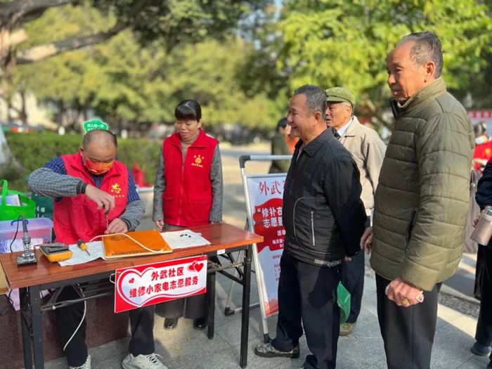 長(zhǎng)泰區(qū)外武社區(qū)新時(shí)代文明實(shí)踐站志愿者免費(fèi)為群眾提供小家電維修服務(wù)