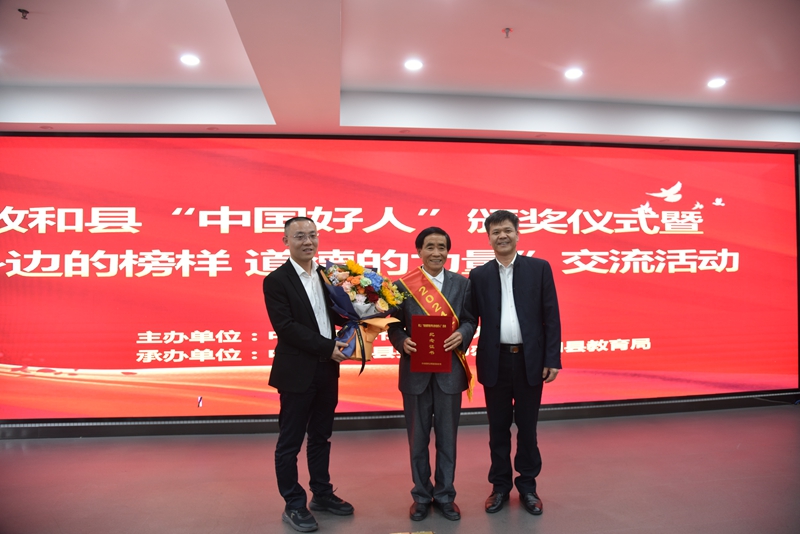 25日,在政和縣教育局,2024年第四季度敬業(yè)奉獻(xiàn)類“中國好人”莊桂淦與大家分享了他堅(jiān)守在農(nóng)村教育教學(xué)一線的心路歷程,讓現(xiàn)場觀眾深受感動(dòng)和鼓舞。1974年,莊桂淦響應(yīng)“支援山區(qū)教育”的號召,從沿海僑鄉(xiāng)來到閩北貧困山區(qū)支教,扎根政和縣鄉(xiāng)村教育一線50年,用堅(jiān)守和付出為困難學(xué)子點(diǎn)燃希望。“這個(gè)榮譽(yù)既是一種鼓勵(lì),也是一種鞭策。作為一名鄉(xiāng)村教師,我要用實(shí)際行動(dòng)愛護(hù)留守兒童,教他們學(xué)會做人、愛祖國,成為建設(shè)祖國的有用之才?!鼻f桂淦拿著榮譽(yù)證書激動(dòng)地說。
