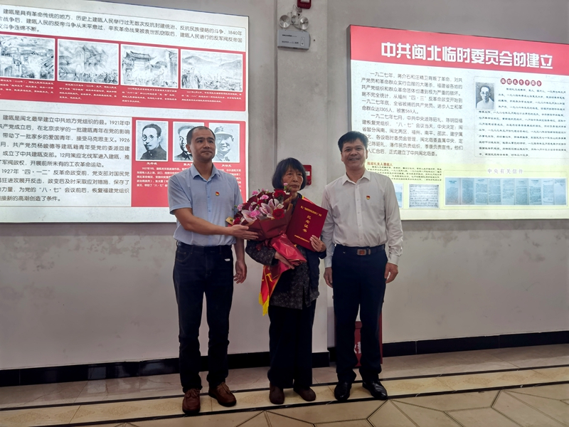 24日,在中共閩北臨委舊址紀(jì)念館,2024年第三季度誠實(shí)守信類“中國好人”沙無濘以烈士后代的身份,飽含深情地向觀眾講述了閩北革命歷史。這位無償捐贈(zèng)祖宅、堅(jiān)持義務(wù)講解39年的文物守護(hù)人,累計(jì)受眾達(dá)10萬人次,用實(shí)際行動(dòng)傳承紅色基因。南平市委文明辦主任黃益水為沙無濘頒發(fā)榮譽(yù)證書。沙無濘曾獲全國最美文物安全守護(hù)人、2024年度“感動(dòng)福建”十大人物等多項(xiàng)榮譽(yù)。