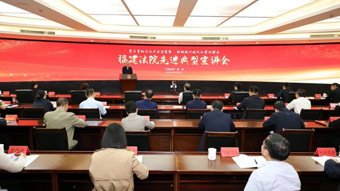 文明風(fēng)4月29日訊 為發(fā)揮先進(jìn)典型示范作用,促推法院工作高質(zhì)量發(fā)展,4月25日,福建省高級(jí)人民法院舉辦“先鋒講堂”暨福建法院先進(jìn)典型宣講會(huì)。本次宣講會(huì)主題為“學(xué)習(xí)貫徹習(xí)近平法治思想,積極踐行現(xiàn)代化審判理念”。福建高院黨組書(shū)記、院長(zhǎng)金銀墻出席并講話。
