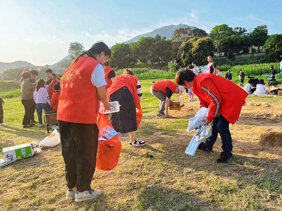 南安市九都鎮(zhèn)組建文明旅游志愿者隊(duì)伍,在露營(yíng)景區(qū),為游客提供文明引導(dǎo)服務(wù),帶頭清掃殘留垃圾。