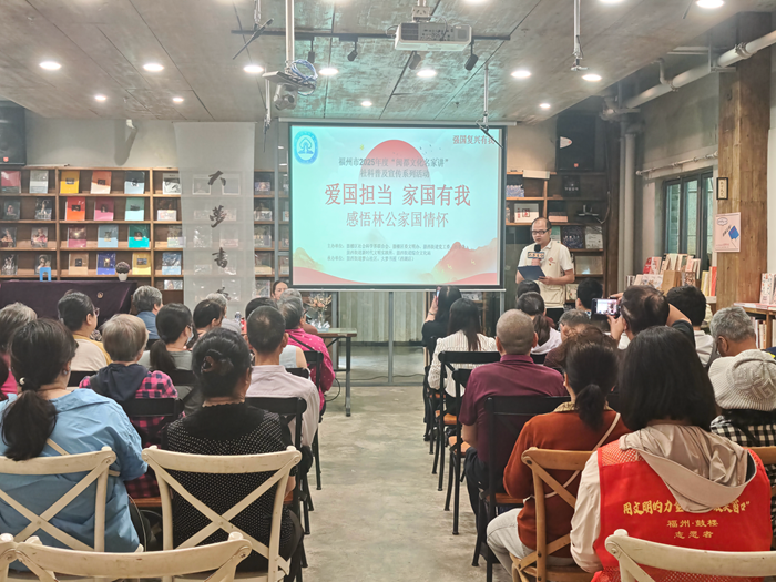 “愛國擔(dān)當(dāng) 家國有我——感悟林公家國情懷”閩都文化名家講社科普及宣傳活動在大夢書屋(西湖店)舉行(鼓西街道供圖)