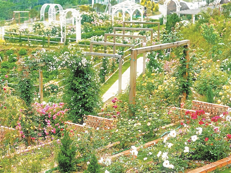 這兩年,市民出游賞花又多了個(gè)好去處——蕉城區(qū)金涵鄉(xiāng)上金貝村。春末初夏,正是月季盛放的最佳時(shí)節(jié),這里匯聚了來自世界各地的800多個(gè)月季品種,各式各樣的月季品種中,既有百年老品,也有這兩年剛問世的國際新品,花型各異,香氣馥郁。