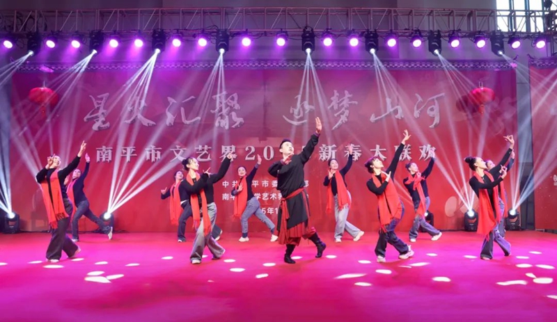 1月17日,“星火匯聚 逐夢(mèng)山河”南平市文藝界2025新春大聯(lián)歡在武夷新區(qū)隆重舉行。圖為舞蹈《再唱山歌給黨聽》(陳紅 攝)