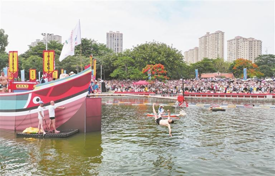 在泉港區(qū)南埔鎮(zhèn)沙格村舉行的一年一度的沙格海上龍舟競賽,現(xiàn)場擠滿了觀看的村民和游客,他們對精彩熱鬧的端午民俗驚嘆不已。