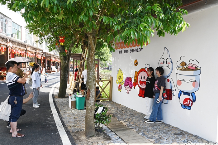 “這里環(huán)境特別好,處處青山綠水,還可以品嘗地道小吃,很適合一家人來走走?!眮碜詮B門的游客楊先生說。