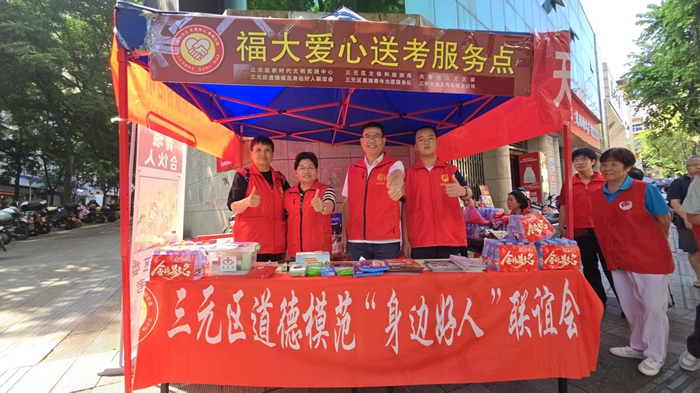 三元區(qū)道德模范身邊好人聯(lián)誼會在考點(diǎn)附近設(shè)立“愛心送考”服務(wù)點(diǎn)開展志愿服務(wù)