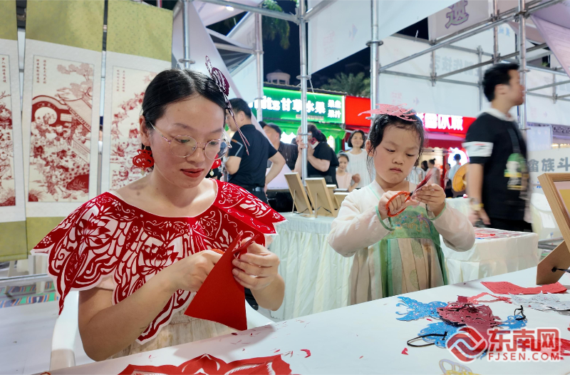 柘榮剪紙非遺技藝代表性傳承人現(xiàn)場展示剪紙技藝。東南網(wǎng)記者 潘月容 攝