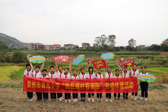 泉州市晉光小學(xué)“百校結(jié)百村”——“我在蝶村有畝田”勞動(dòng)體驗(yàn)活動(dòng)。晉光小學(xué) 供圖