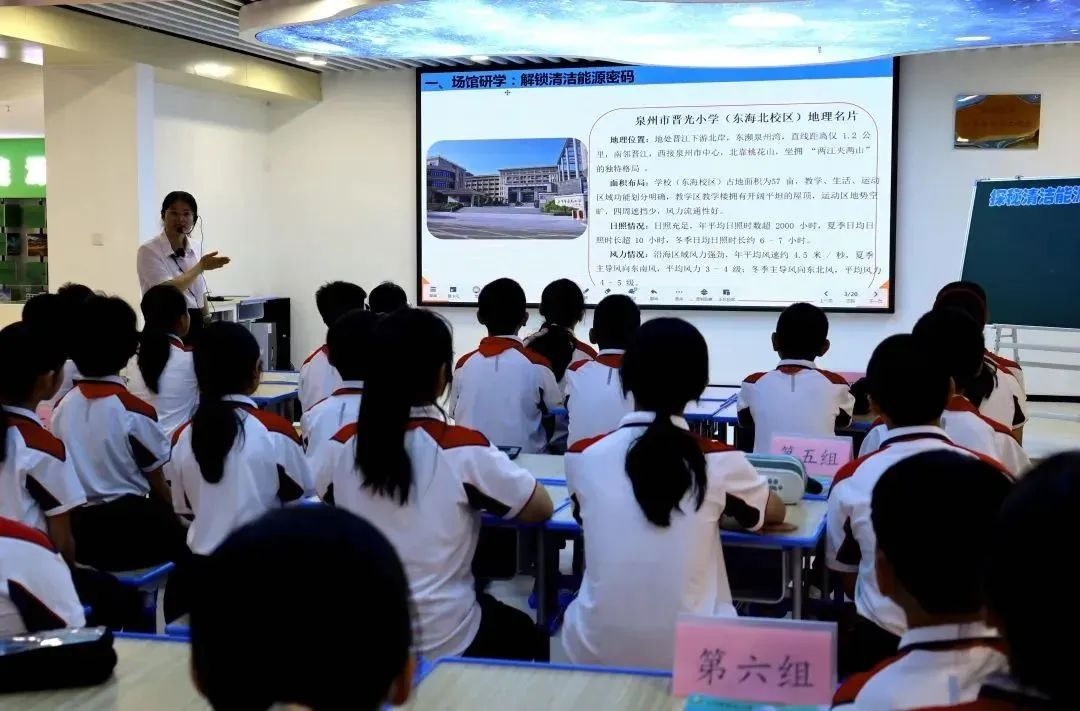 圖為泉州市晉光小學(xué)老師執(zhí)教“科學(xué)+場館”項目式學(xué)習(xí)《探秘清潔能源》。
