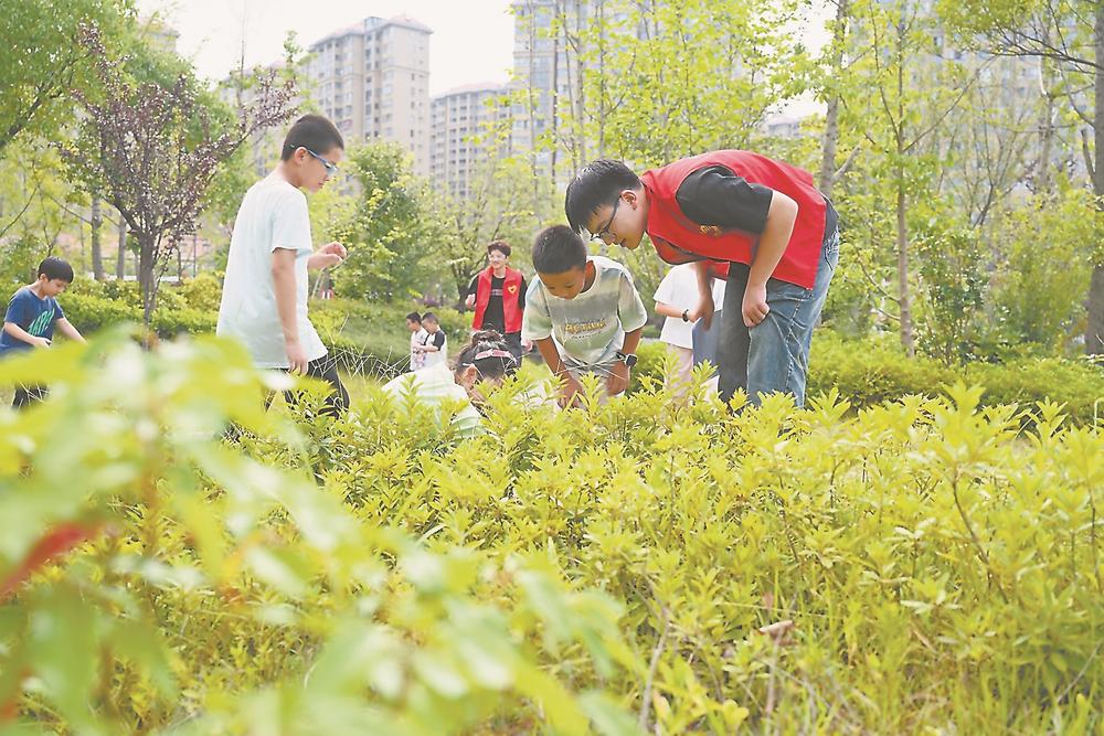 7月17日,返鄉(xiāng)大學生志愿者帶領孩子們在屏南縣東湖公園開展昆蟲科普知識小課堂。