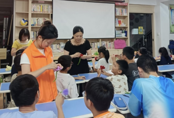 俊賢社區(qū)暑托班開設(shè)“指尖上的中國美”絨花手工課