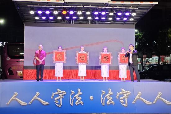 詔安縣政法系統(tǒng)將法治精神與文明理念融入文藝作品,在四都鎮(zhèn)舉辦法治下鄉(xiāng)宣講活動(dòng),活動(dòng)采用“開閉幕式+三大篇章”敘事結(jié)構(gòu),涵蓋10個(gè)節(jié)目,讓文明法治“精神盛宴”走進(jìn)千家萬(wàn)戶??h委政法委以“接地氣 惠民生”為導(dǎo)向,融入詔安縣書法藝術(shù)之鄉(xiāng)特色,組織縣法院等相關(guān)人員排演書法表演唱《墨香詔安》,制作詔安政法特色視頻背景,將書畫藝術(shù)與法治主題完美融合,拉進(jìn)群眾普法距離感,并利用演出間隙現(xiàn)場(chǎng)滾動(dòng)播放《詔安,一座心懷感恩的平安縣城》原創(chuàng)微視頻;協(xié)調(diào)縣國(guó)安局、檢察院選送并表演《小朱說(shuō)案》《親愛(ài)的你啊》等節(jié)目,以文藝形式傳遞法治溫情。