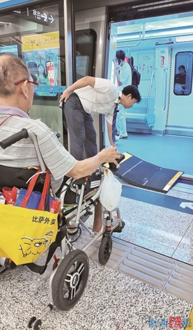 林大爺出行的前一天,記者通過(guò)廈門(mén)地鐵App為他預(yù)約。登錄廈門(mén)地鐵App,進(jìn)入“愛(ài)心預(yù)約”界面填寫(xiě)相關(guān)信息后,可勾選詳細(xì)選項(xiàng):是否需要輪椅、渡板,是否有特殊需求等,流程清晰易懂。昨日,地鐵工作人員提前在體育中心進(jìn)站口等候林大爺,將其攙扶上車(chē);車(chē)子開(kāi)行之后,工作人員即與湖濱東路站工作人員聯(lián)系,交代林大爺?shù)某塑?chē)信息,如坐在哪節(jié)車(chē)廂、幾時(shí)抵達(dá);林大爺?shù)秸厩?,湖濱東路站工作人員就在該車(chē)廂車(chē)門(mén)處守候,隨后將其護(hù)送出站。