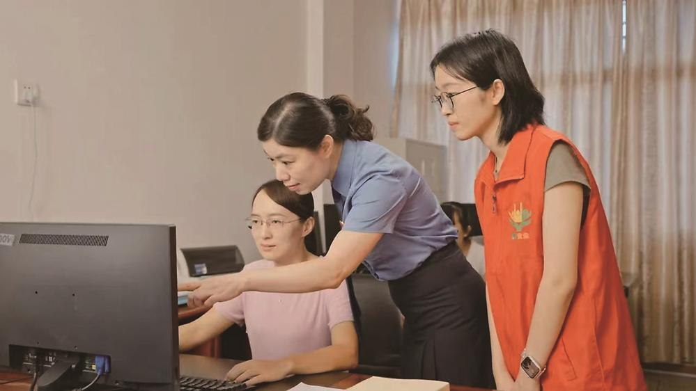 檢察官同市婦聯(lián)工作人員、春蕾安全員共同查看困境兒童建檔觀護(hù)情況。