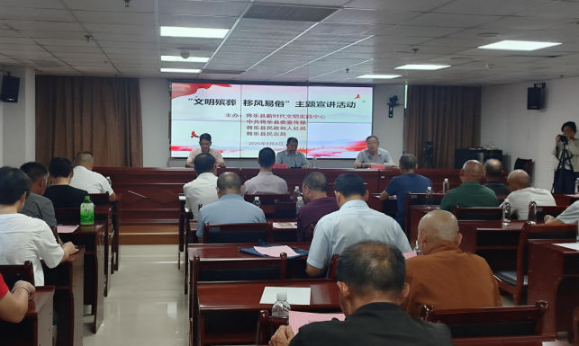 文明風(fēng)9月5日訊 9月4日,將樂縣新時(shí)代文明實(shí)踐中心聯(lián)合縣委宣傳部(文明辦)、縣民政和人社局、縣民宗局,開展“倡導(dǎo)文明殯葬 深化移風(fēng)易俗”主題宣講活動(dòng),全縣殯葬服務(wù)機(jī)構(gòu)從業(yè)人員、民間風(fēng)俗從業(yè)人員50余人參與活動(dòng)。